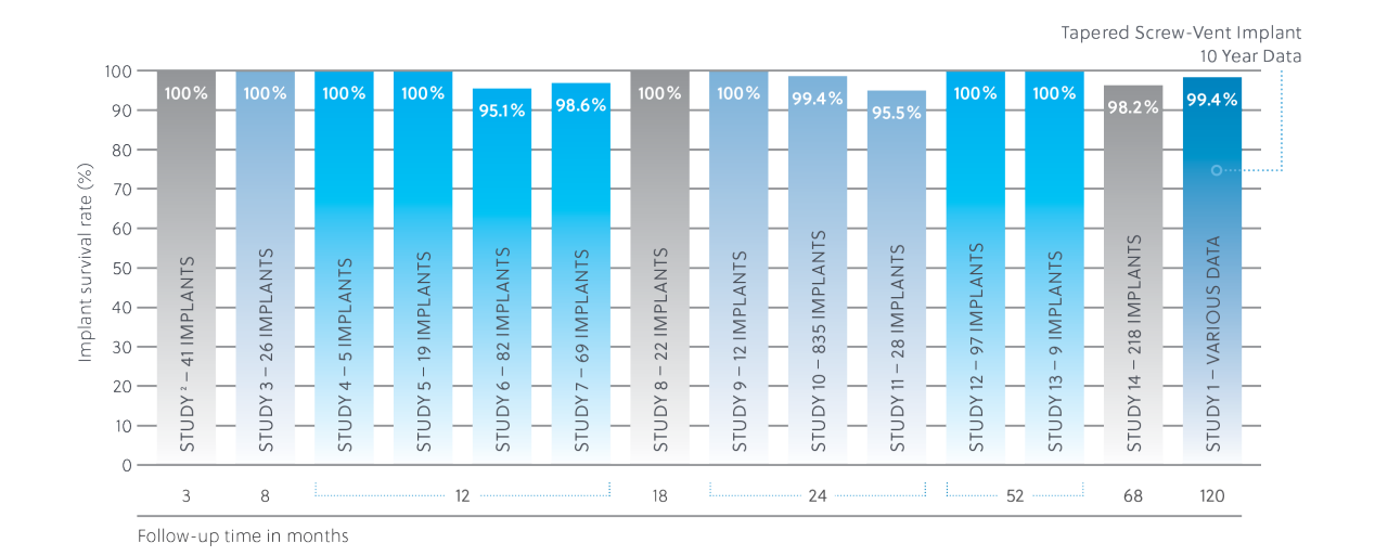 Primary stability achieved by using Tapered Screw-Vent Implants enables immediate placement and/or immediate loading in appropriately selected patients.2, 7, 15
